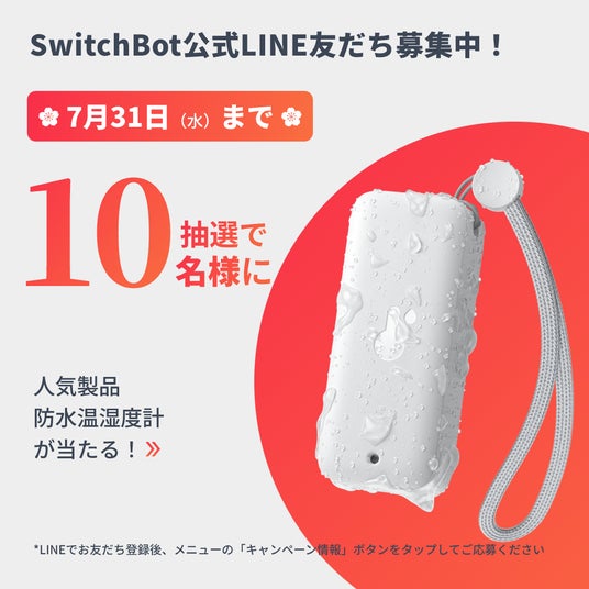 抽選で人気製品SwitchBot防水温湿度計をプレゼント(10名様)