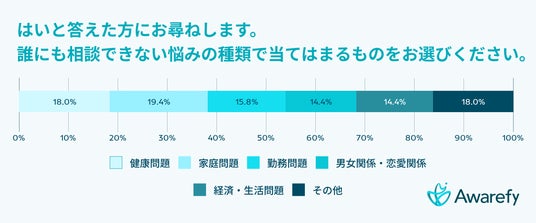「心の健康と成長を支えるデジタル・メンタル・プラットフォームを実現する」をミッションに、AI メンタルパートナー「アウェアファイ」の企画・開発・運営を行う株式会社Awarefy(本社:東京都新宿区、代表取締役 CEO 小川 晋一郎)は、「自殺予防週間」に合わせて「悩み相談」に関するアンケート調査を行い、672名から回答を得ました。