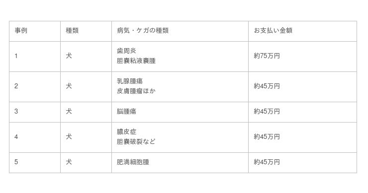 ※上記の数値は、PS保険加入者さまから請求されたものであり、ペットメディカルサポートが補償する範囲を示すものではありません。また、平均や水準を示すものでもありません。