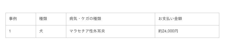 保険金のお支払いは、上記のように高額なものに限りません。次に、平均的なお支払い事例としてペットのマラセチア性外耳炎の診療をご紹介します。