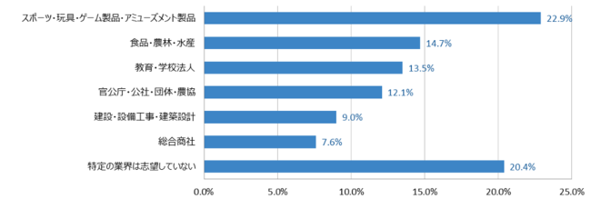 ◆ 希望する業種を聞いたところ、もっとも多かったのは「スポーツ・玩具・ゲーム・アミューズメント」。一方で「特定の業界を志望していない」という回答が2位に【図5】
