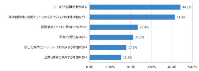 【図4】運動部学生が就職活動に不利だと思う点(上位抜粋)