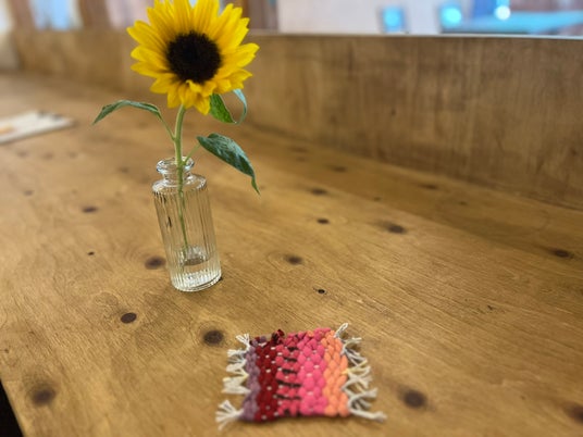 「遊びに来るお花屋さん Gyutto」のドライフラワーをプレゼント。コースターをつくるプランではミニ花瓶付き。