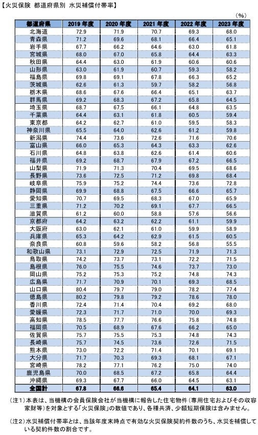 (注2)水災補償付帯率とは、当該年度末時点で有効な火災保険契約件数のうち、水災を補償している契約件数の割合です。