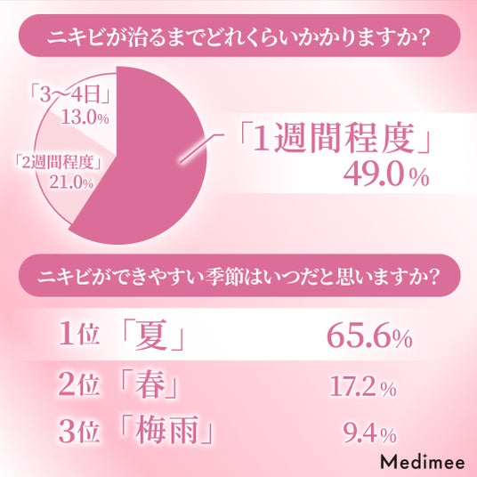 【ニキビが治るまでどれくらいかかりますか?また、ニキビができやすい季節はいつだと思いますか?】