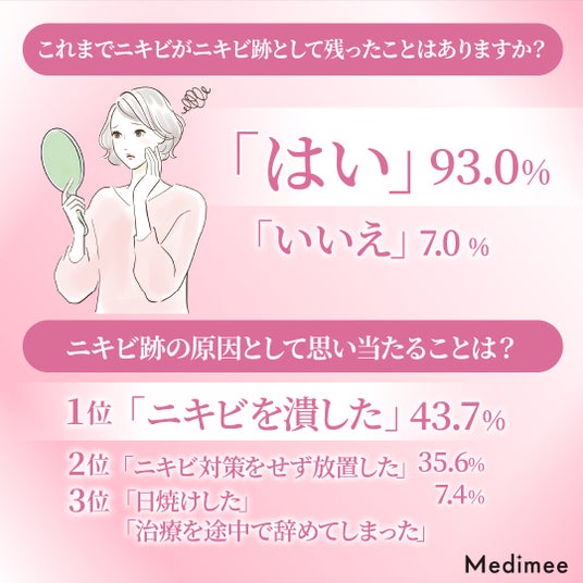 アンケート回答者の約9割がニキビ跡ができたことがあると回答!ニキビ跡治療の対処方法やニキビが発生する原因などについて調査しました。