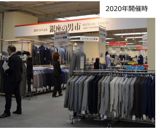 ビジネススタイルのカジュアル化やコロナ禍のリモートワークの普及などにより売り上げは減少傾向ですが、在宅ワークでも動きやすい「アクティブスーツ」を販売したり、密を避けられるゴルフ人気からゴルフバーゲンを併催するなど、コロナ禍のビジネスマンの変化にも対応し、常に進化し続けています。