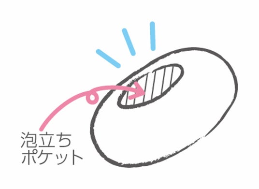 ・女性や子どもなど小さめの手でも転がしやすく、空気を含みやすくするくぼみを施した泡立てやすい形状