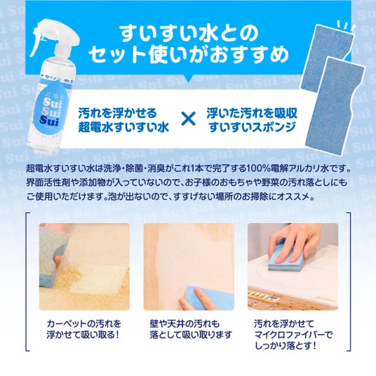 当社のヒット商品である電解水クリーナー「超電水すいすい水」と合わせて使うこともできるので、同じ「すいすい」ブランドの姉妹品という扱いでもあります。