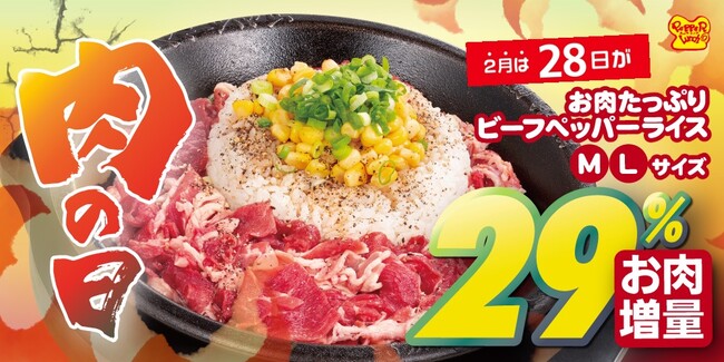ペッパーランチでは毎月29日に“肉の日”キャンペーンを開催中!昨年から始まった“肉の日”キャンペーンは2月で8回目を迎えました。今年の2月は29日がないので、28日にお得なサービスを実施いたします。