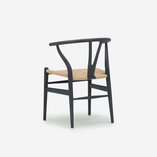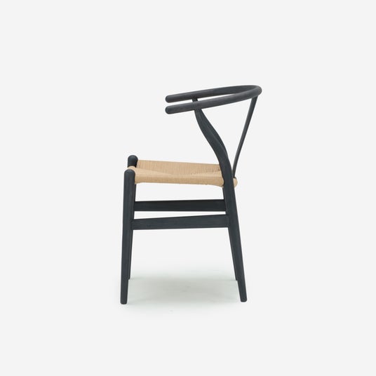 ハンス J. ウェグナーによってデザインされ1950年から生産され続けている名作チェアCH24。Yの字に見える背もたれの形状から「Yチェア」の愛称で世界中で親しまれ、美しい後脚のフォルムや丸棒を曲げて形作られた笠木の優美なラインなど、ウェグナーによるデザインの特徴がよく表れています。座面は職人の手仕事によるペーパーコード張りで柔らかな座り心地です。