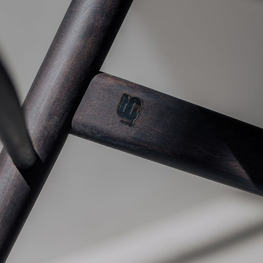 一脚一脚熟練した職人が染色を繰り返したフレームには<TIMBER CREW PRODUCTS>の刻印など3社コラボの限定の証が施されます。*写真は2024年に限定販売した泥染め“SUMI(炭)”仕様