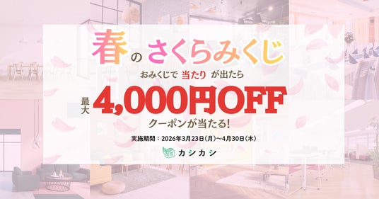レンタルスペースの検索予約プラットフォーム「カシカシ」を運営する株式会社友安製作所(本社:大阪府八尾市、代表取締役社長:友安啓則)は、2026年3月23日(月)より、最大4,000円OFFのクーポンが当たる「春のさくらみくじ」キャンペーンを実施いたします。