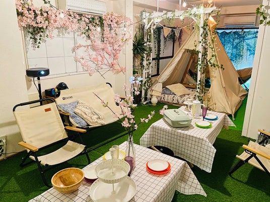 天気を気にせずくつろげる室内でアウトドア気分のお花見体験