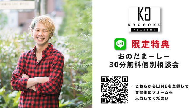 この度KYOGOKUアカデミー内のコンテンツに新たに追加。有名Youtuberまーしーを特別講師で招いて、SNSで集客する講義をしてもらいました!しかもライン登録限定特典として30分の無料コンサルが受けられるんです。ブランディング力を上げたい人は必見です。