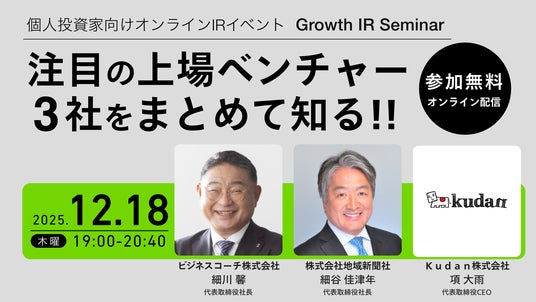 株式会社地域新聞社(本社:千葉県八千代市、代表取締役社長:細谷 佳津年、証券コード:2164、以下「当社」といいます。)の代表取締役社長 細谷佳津年が、上場ベンチャー企業と個人投資家の架け橋となるオンラインIRイベント「Growth IR Seminar」に登壇いたします。