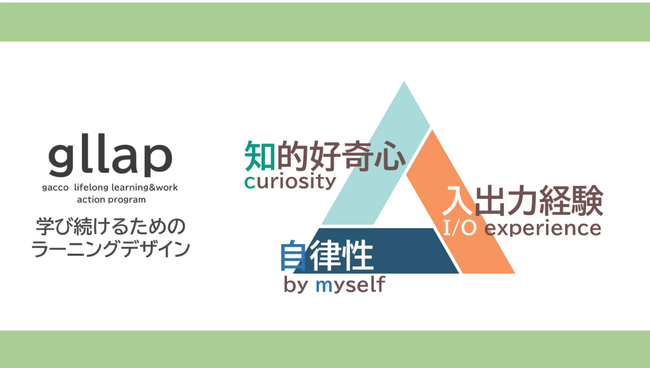 「gllap(gacco lifelong learning&work action program)」(グラップ)は、これまで以上に学び直しやキャリア開発に関心のある方々に向けて、「生涯学習×デジタルテクノロジー」をテーマに、様々な大学や企業の皆様と多様な学び体験の仕掛け、仕組みを構築していくために、2022年4月に開始したプログラムです。「知的好奇心」「自律性」「入出力(インプット・アウトプット)経験」の3つのラーニングデザインをベースにして、「テクノロジータッチポイントの拡張」「国内の地域エリアの拡張」「ステークホルダーの多様性の拡張」の3つの拡張アプローチにより包括的な学習プログラムを構築しています。