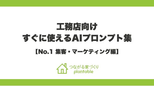 当社は、工務店向けコミュニケーションツール「つながる家づくり plantable(プランテーブル)」を通じた数多くの支援経験から、専門知識不要・最小限の情報入力だけで実務レベルのアウトプットが得られるプロンプト集を開発しました。