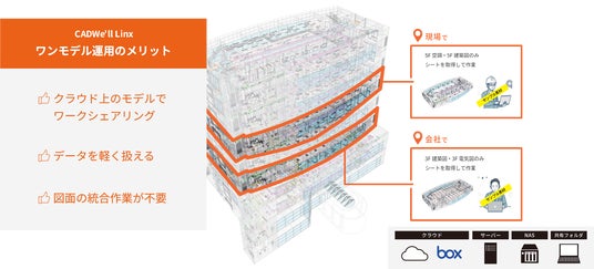 サブコンが多く利用しているBoxに対応。Box Driveでワンモデル運用が可能になり、複数人でワークシェアリングを実現します。