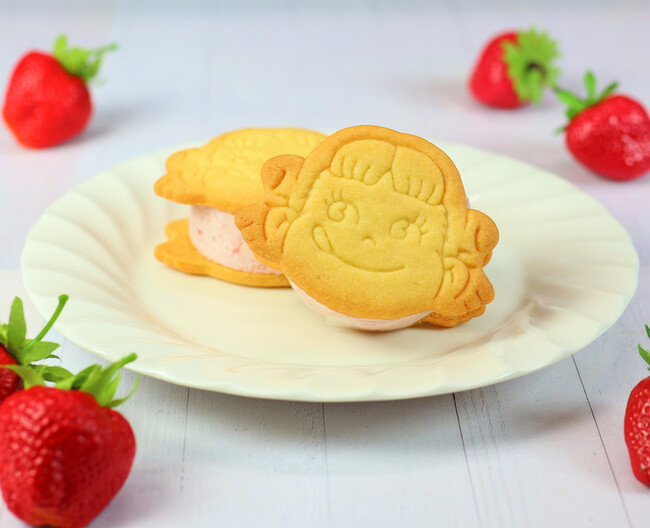 ペコちゃんの顔をかたどったサブレにミルキーガナッシュをサンドしました。現在、milky70 since1951やFUJIYA CONFECTIONERYなど一部店舗で販売中の大人気商品です。当催事期間中ここだけでご用意するフレーバー「プレミアムあまおう苺」もございます。