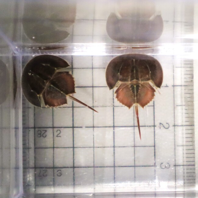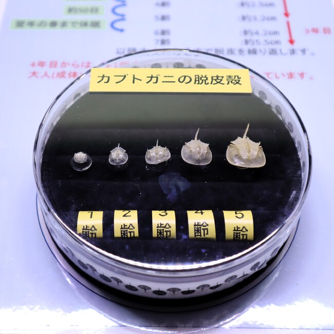 展示するカブトガニの幼生は、西条市立東予郷土館(愛媛県西条市)で孵化し、放流するために飼育されていた個体を譲り受けたものです。