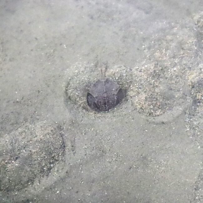 餌を食べている様子を観察でき、カブトガニの保護活動も紹介