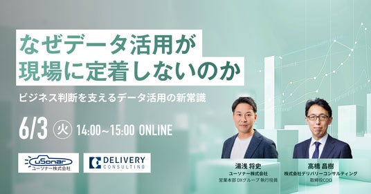 データリテラシーの向上を通じてデータドリブンカンパニーへの変革を支援する株式会社デリバリーコンサルティング(本社:東京都港区、取締役CEO:内藤 秀治郎)は、ユーソナー株式会社(本社:東京都新宿区、代表取締役会長:福富七海、代表取締役社長:長竹 克仁)と共催でWEBセミナーを開催いたします。