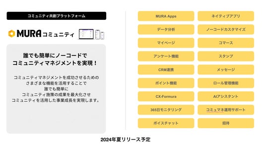 当社が提供するコミュニティ関連サービス群「MURA」にて、「長崎友輪家」のコミュニティの設計から運営までサポートしております。当社が独自開発した、趣味でつながるコミュニティプラットフォーム「MURAコミュニティ」を利用し、コミュニティ運営をサポートします。