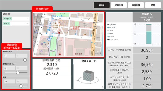 株式会社大林組(本社:東京都港区、社長:蓮輪賢治)は、建物計画の初期段階で省エネ技術によるCO2排出量削減効果と、コストの増減率を瞬時に比較検証し、お客様の方針決定を支援するシステム、「カーボンデザイナー E-CO BUILDER(エコビルダー)」を開発しました。