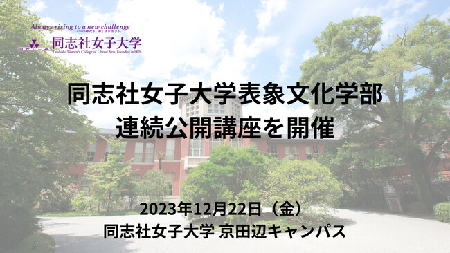 同志社女子大学(所在地:京都府京田辺市・京都市 学長:小崎眞)では、この度標記の連続公開講座を開催いたします。
