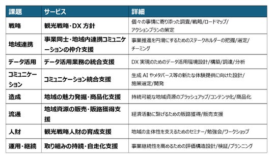 このたびの協業により、全国各地域の自治体や地域の観光関連事業者を対象に、複数のステークホルダーが関係する各地域の事情に沿った適切な戦略を構築、実行します。