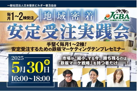 一般社団法人日本優良ビルダー普及協会(事務局:東京都港区、代表理事:田島亮、以下「JGBA」)は「リアル」にこだわった学びの機会を積極的に提供し、会員企業の更なる情報共有と交流機会創出のため、JGBA役員企業・会員企業が登壇するセミナーを定期的に実施しています。