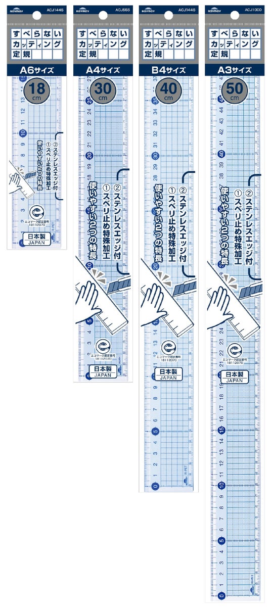 文具製造販売を行う株式会社レイメイ藤井(本社:東京都江東区)は、軽く押さえるだけピタっと止まる、カッター作業に最適な「すべらないカッティング定規」の新サイズ18cm・40cmを2月下旬に発売します。