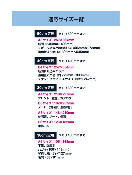 ACJ1446 1,000円(税込1,100円) 本体サイズ:W45 x H410 x D3mm厚 対応サイズ:B4サイズ(257×364mm)まで
