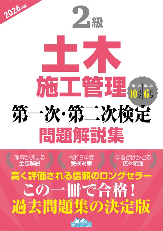 『2級土木施工管理 第一次・第二次検定問題解説集 2026年版』を発売します。1977年から48年間、施工管理技士の受検講習会を開催し累計約99万人の受講者をサポートしてきた実績をもち、受検者・合格者から高く評価されているロングセラーの過去問題集最新版で、令和8年度の2級土木施工管理技術検定を受検する方必携の一冊です。