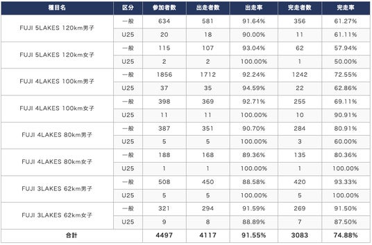 最長距離120kmでは男女ともに大会新記録が更新され、さらに80km男子においても記録更新が達成されるなど、複数種目でハイレベルなレースが展開されました。