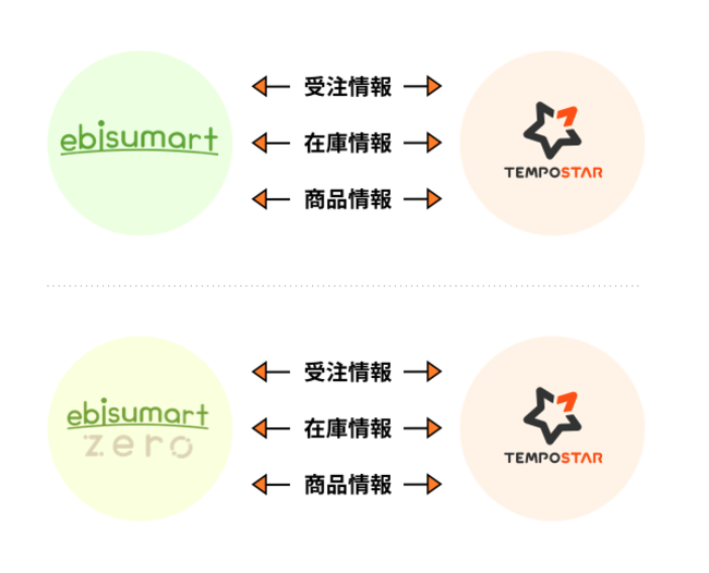 これにより、ebisumart zeroおよびebisumartでECサイト構築を行い、TEMPOSTARを導入したEC事業者様は、運営する複数のネットショップにおける受注・在庫・商品情報を自動で連携することができ、ECサイト運営におけるバックヤード業務の効率化につながります。
