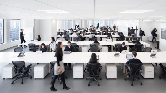 新オフィスは、「未完成・発展性」と「透明性」をテーマとしています。「未完成・発展性」については、Origamiがまだ発展途上の会社であり、今後も形を変えながら進化をしていくことを表現しています。このため、オフィス内のレイアウトや家具などは、今後さらにメンバーが増加したり、新しい部署が増えたりした場合に、柔軟に拡張できるシステムになっています。また、「透明性」についても、創業当時から重視しているテーマで、社員間での透明性の高いコミュニケーションを基本とし、スピーディーに発展していくことを目指しています。もちろん、透明性を掲げながらも、決済をサービスとしている会社として、セキュリティをしっかりと高めるための工夫がなされています。