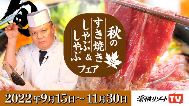 湯快リゾートは、2022年9月15日(木)から11月30日(水)までの3ヶ月間限定で「秋のすき焼き&しゃぶしゃぶフェア」を開催いたします。