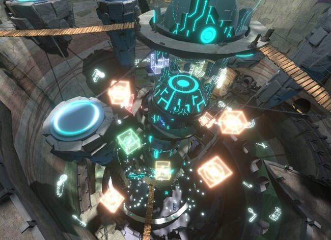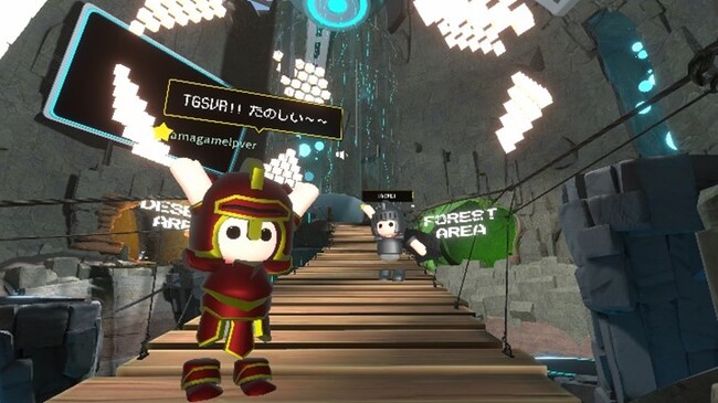 TGSVR2022の会場は、今年TGSが開催される幕張メッセの地下に広がるダンジョンです。からっぽの幕張メッセの床に空いた大きな穴をエレベーターで下ると、突如出現する巨大な地下空間。そこには長い間にゲームの記憶が堆積された「ゲームの地層」が出現しています。TGSVR2022の来場者は東京ゲームショウを楽しむと同時に、「ゲームの地層」を探検するプレイヤーとして、クエストをクリアしながら会場内を探索することが可能です。