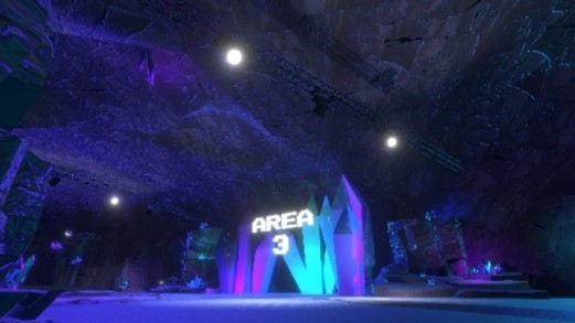 コア空間から移動できる大きな3つの横穴。砂の洞窟、光と緑に満ちた峡谷、鉱石輝く地下世界と、それぞれ異なった様相になっています。中では様々な出展社・協賛社の展示を楽しむことができ、最新のゲーム情報を入手したり、TGSVR2022でしか見ることのできないブースやモニュメントを眺めることが可能です。また今年初参加となる協賛企業のスペースでは探検の合間に楽しめるさまざまな体験をご用意しています。
