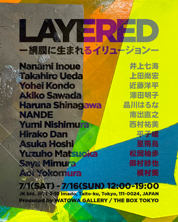 この度、アートプロジェクト・コレクティブ WATOWA GALLERY は、12名の新進気鋭のアーティストによりGroup Show “LAYERED ー 網膜に生まれるイリュージョン”を2023年7月1日(土)から7月16日(日)まで開催いたします。