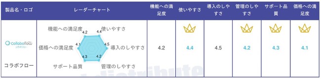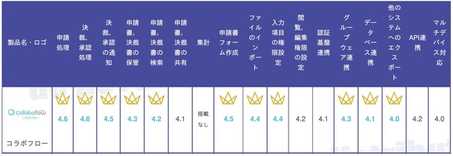 コラボフローは、ワークフローシステム部門の全28の評価項目のうち、満足度No.1をはじめとする19項目でNo.1評価を獲得しました。No.1を獲得した各項目は以下の通りです。