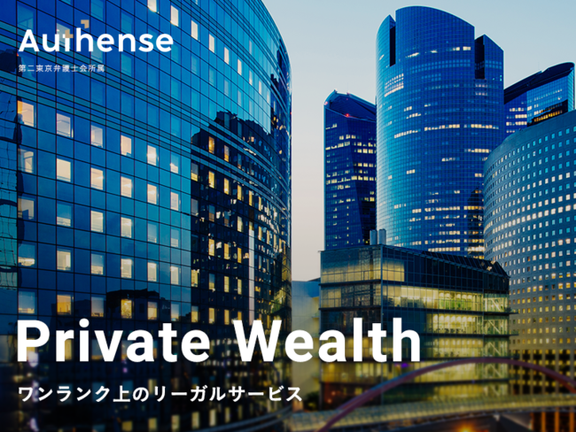 Authense法律事務所(東京都 港区)は、2022年1月に資産家、経営者の皆さまに専門特化した「プライベートウェルス」のサービス提供を開始いたしました。企業法務はもちろん、資産の運用・管理から、プライベートなお悩みや周りに相談しづらい問題など、あらゆる分野に幅広く対応します。さまざまな法的トラブルを解決に導いてきた当事務所の弁護士が、資産家、経営者の皆さまの権利と資産を全力でサポートいたします。