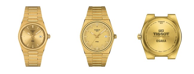 2022年9月2日(金)に発売となるティソ PRX クォーツ 35mmと40mmの新色、ゴールドモデルを8月25日から心斎橋ブティック限定で先行発売いたします。各30本限定で、ケースバックにはブランドロゴと“OSAKA”の刻印をあしらいました。