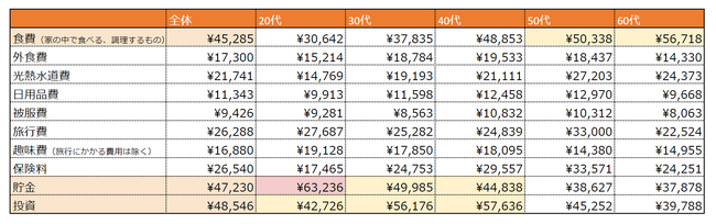 ・「貯金」支出額は全年代で20代がダントツのトップ、6万3236円(唯一の6万円超え)。