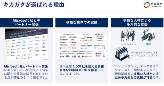 これまでに1,000社以上の企業でAI導入や人材育成の実績があり、先進技術を活用したプロジェクトで豊富な経験を有しています。また、Microsoft社とのパートナーシップにより、Azureを活用した高度なAIソリューションの提供も可能です。