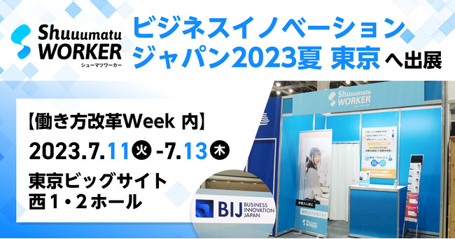 株式会社シューマツワーカー(本社:東京都渋谷区、代表取締役CEO:松村 幸弥)は、ビジネス総合展「ビジネスイノベーションジャパン 2023 夏 東京」(https://www.bizcrew.jp/expo/2023-bij-smr-tokyo)に、当社が運営する副業・業務委託人材のマッチング・伴走支援サービス「シューマツワーカー」と、業務委託人材管理SaaS「フリーランスフォース」のブースを出展いたします。