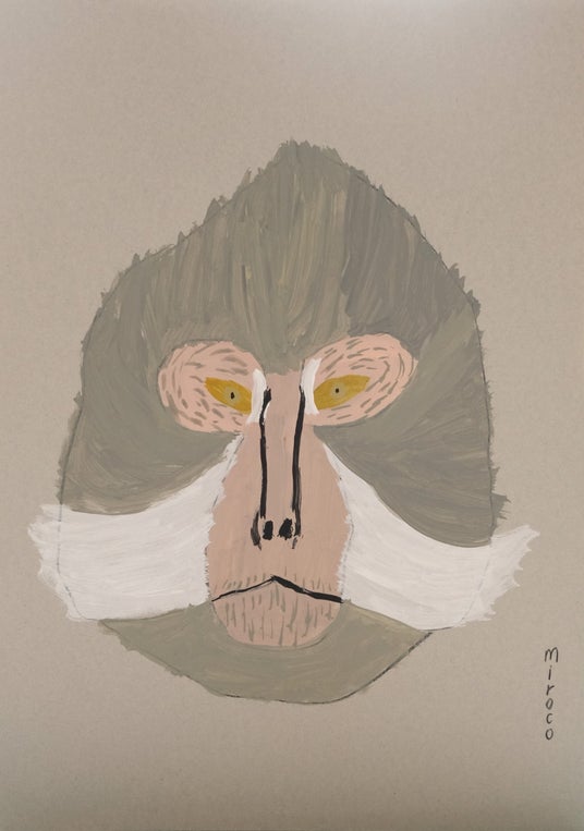 カニクイザル (2012) 402×303mm ボール紙、アクリル