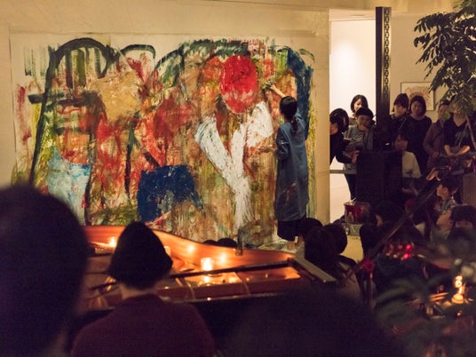 2017年 「いきもののおまじない展」(アルフレックス東京)haruka nakamura の音楽に合わせたライブペイントの様子 photo by Yuichiro Tamura
